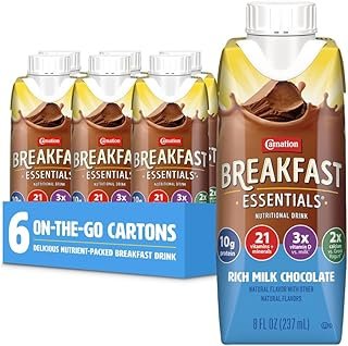 About this item NUTRITIONAL BREAKFAST DRINK: Carnation Breakfast Essentials Nutritional Drinks make it easy to start your day with key nutrients at breakfast HIGH-QUALITY PROTEIN: Each 8 fl oz serving is packed with 10 g of high-quality protein to help build & maintain muscle VITAMINS & MINERALS: Provides an excellent source of 21 vitamins & minerals to help meet daily nutritional needs and fill nutritional gaps KEY NUTRIENTS FOR IMMUNE SUPPORT: Carnation Breakfast Essentials Nutritional Drinks contain 100% daily value (DV) of vitamin C and 50% DV of vitamin D, key nutrients for immune support NO ARTIFICIAL flavors, colors or sweeteners. Also gluten free and kosher. › See more product details