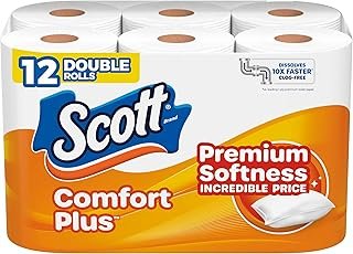 About this item WHAT’S INCLUDED — 12 Double Rolls of Scott ComfortPlus Toilet Paper, 1-ply, 231 sheets per roll, 291.60 square feet total (12 double rolls = 24 regular rolls) COMFORT’S NOT JUST A NAME — We made Scott ComfortPlus 3x thicker than the leading value brand so you can have extra comfort every time SOFTNESS + STRENGTH — Yes, Scott ComfortPlus is soft toilet paper, but we don’t stop there. Our bath tissue is also 4x stronger than the leading value brand GENTLE ON FLUSHING — Don’t sacrifice your plumbing for comfort. This bath tissue is made with clog-free technology and dissolves 10x faster than the national brand ultra soft & strong Scott packaging and product may vary from images shown › See more product details