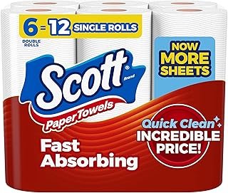 Scott Paper Towels, Choose-A-Sheet, 6 Double Rolls = 12 Regular Rolls (108 Sheets Per Roll)